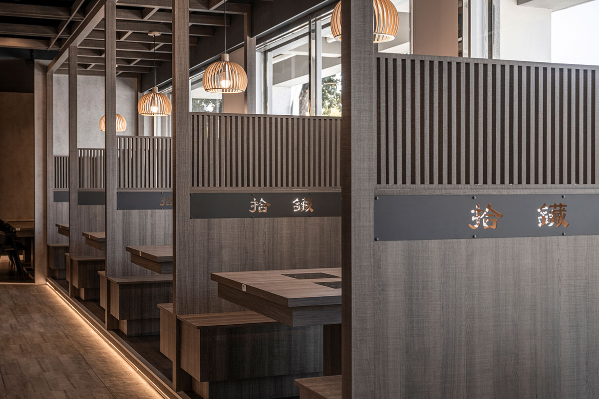 以日式侘寂為靈感,融合現代極簡語彙,空間設計選用深木色為基調、自然木紋、鐵件與光影的協作,形塑出一處沉穩質感與空間氛圍、服務動線、美學兼具的整體共感,精心打磨每一處細節。