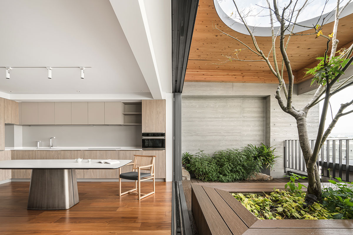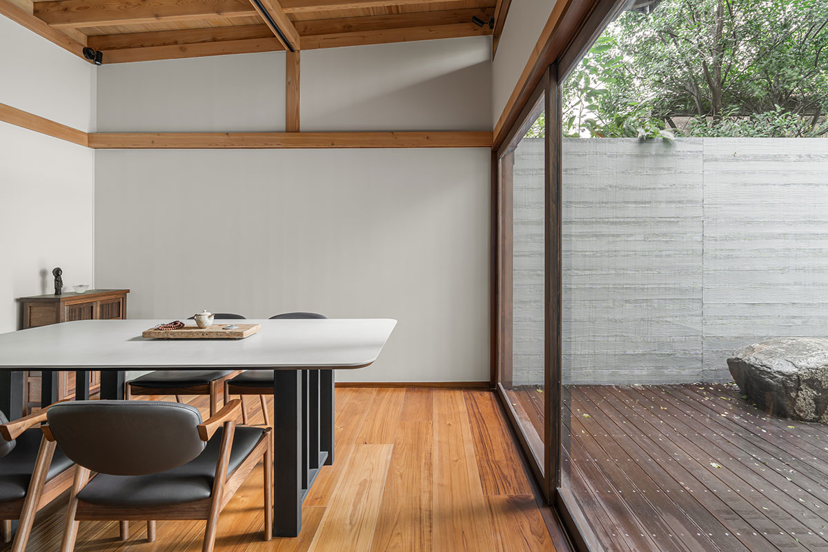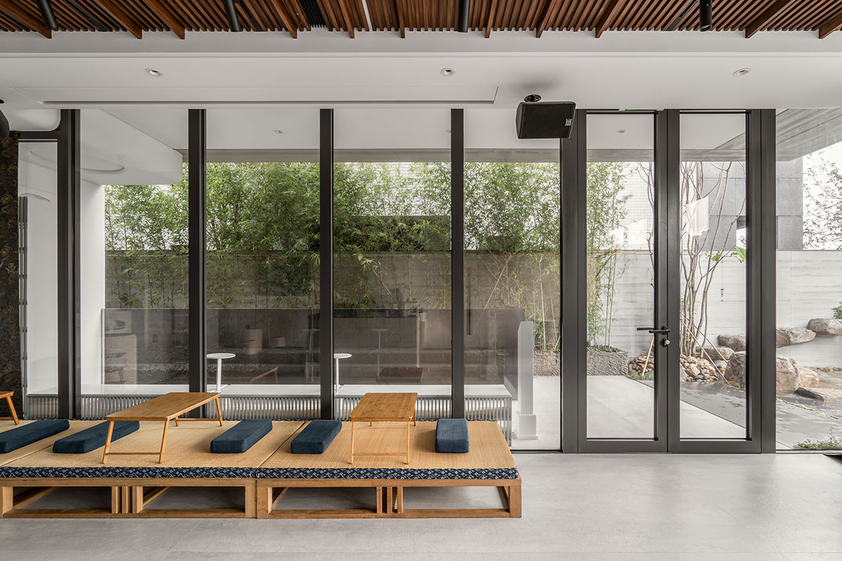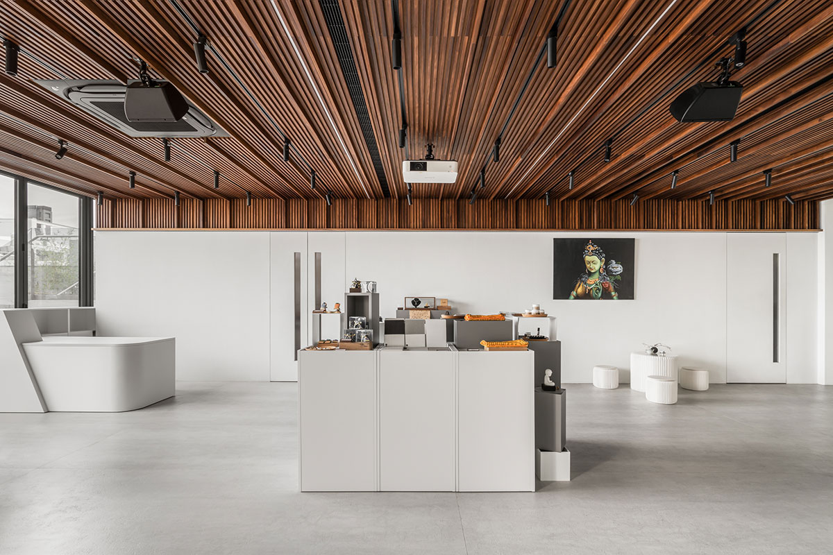 此當代宗教建築裡,配合建物清水混凝土粗曠的質地,將大量的實木帶入室內之中,帶來溫暖與質樸的感受,與藏傳佛教中強調內觀與冥想的理念相呼應。無論是視覺、聽覺、觸覺、味覺還是嗅覺,都在這裡找到了共鳴。