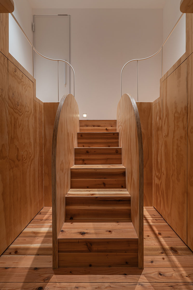 Within this contemporary religious architecture, the raw texture of exposed concrete is met with the warmth of natural timber, introduced generously throughout the interior. The interplay between these two materials reflects a subtle tension—one that resonates with the principles of Tibetan Buddhism, where external stillness and internal fullness coexist in harmony.