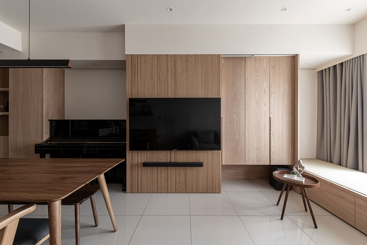 在空間中植入大地的溫度,讓自然木紋成為家的主角,搭配簡單俐落的線條,讓整個空間乾淨又溫暖。