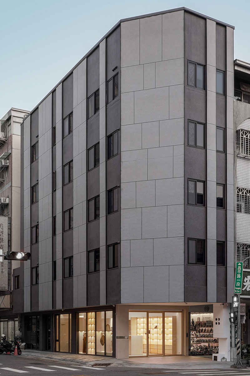 整棟外觀以輝俐落的幾何線條搭配耐候建材為主軸,呼應都市紋理與環境氣候,並巧妙整合招牌視覺、出入口動線與光源設計,讓建築不只是表象更新,更是一種商業機能與街道互動的重啟。