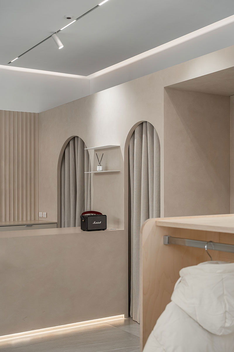 一樓作為開放式店鋪空間,採用大面玻璃與簡潔材質,放大品牌展示效果,同時創造通透引導的人流動線。讓設計不僅為建築「拉皮」,更為空間注入全新價值。