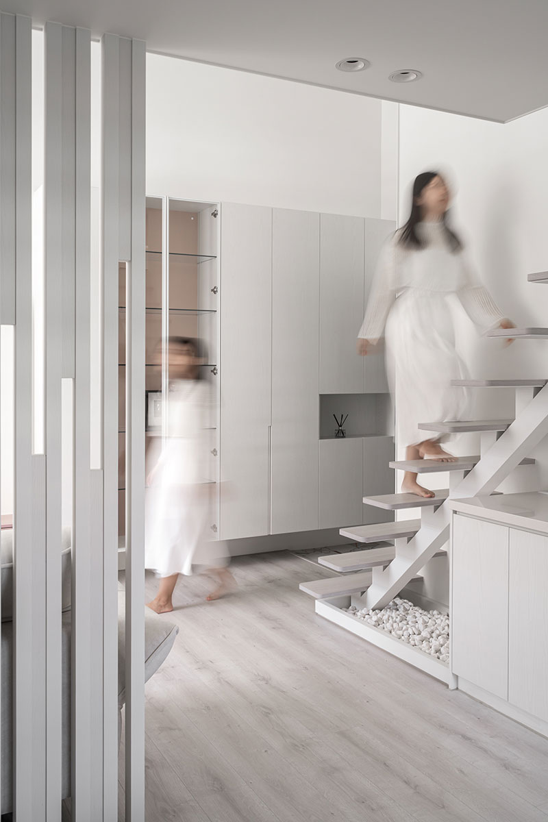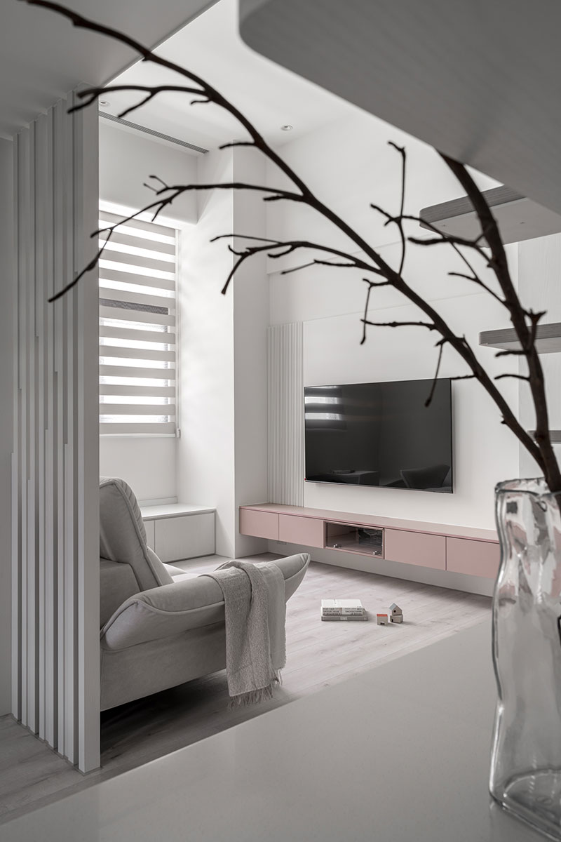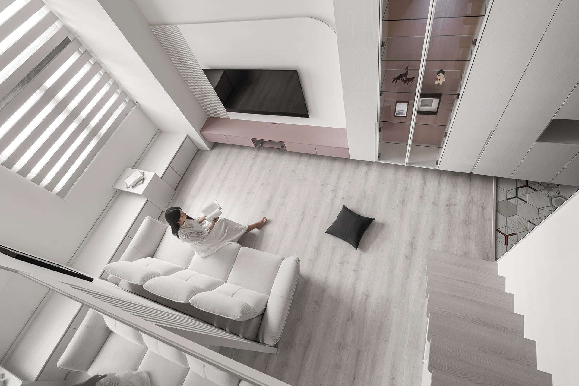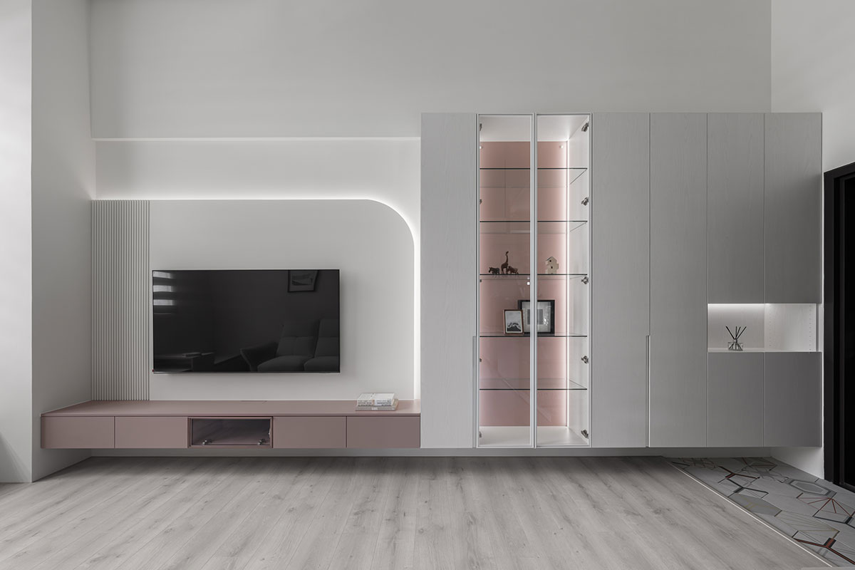 這間住宅是為一位可愛的業主量身打造的專屬天地。霧灰色鋪陳出平靜的基調,隱隱透出灰粉色的溫柔,讓空間在冷靜與柔美之間找到最恰到好處的平衡。色彩、材質與光影彼此交織,讓每一個角落都蘊含著舒適與質感。