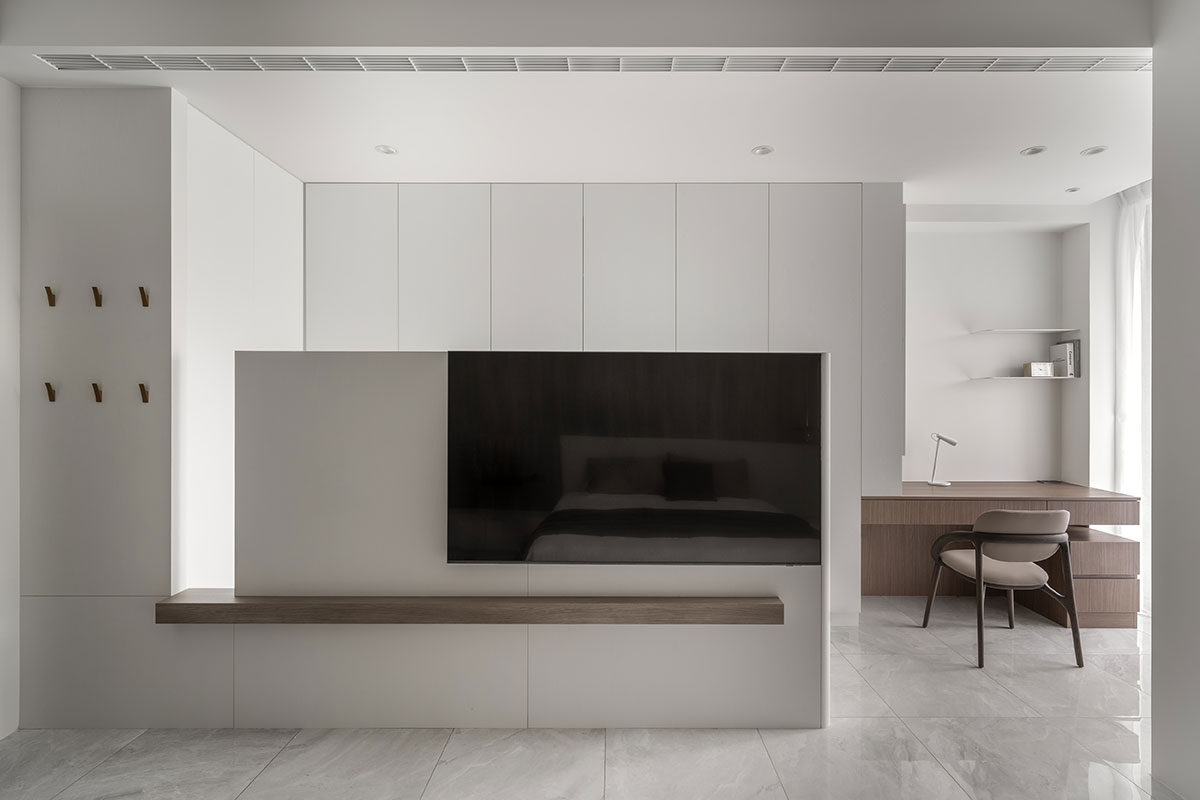 低飽和度的暖色系輕柔鋪展,細膩營造出柔和而溫馨的氛圍,讓空間在不經意間流露出舒適與安定。去繁就簡,摒除多餘的裝飾與複雜性,讓純粹的設計語彙展現出細緻的層次。井然有序的和諧關係,使美感與功能相輔相成,於日常之中找到最恰如其分的平衡。