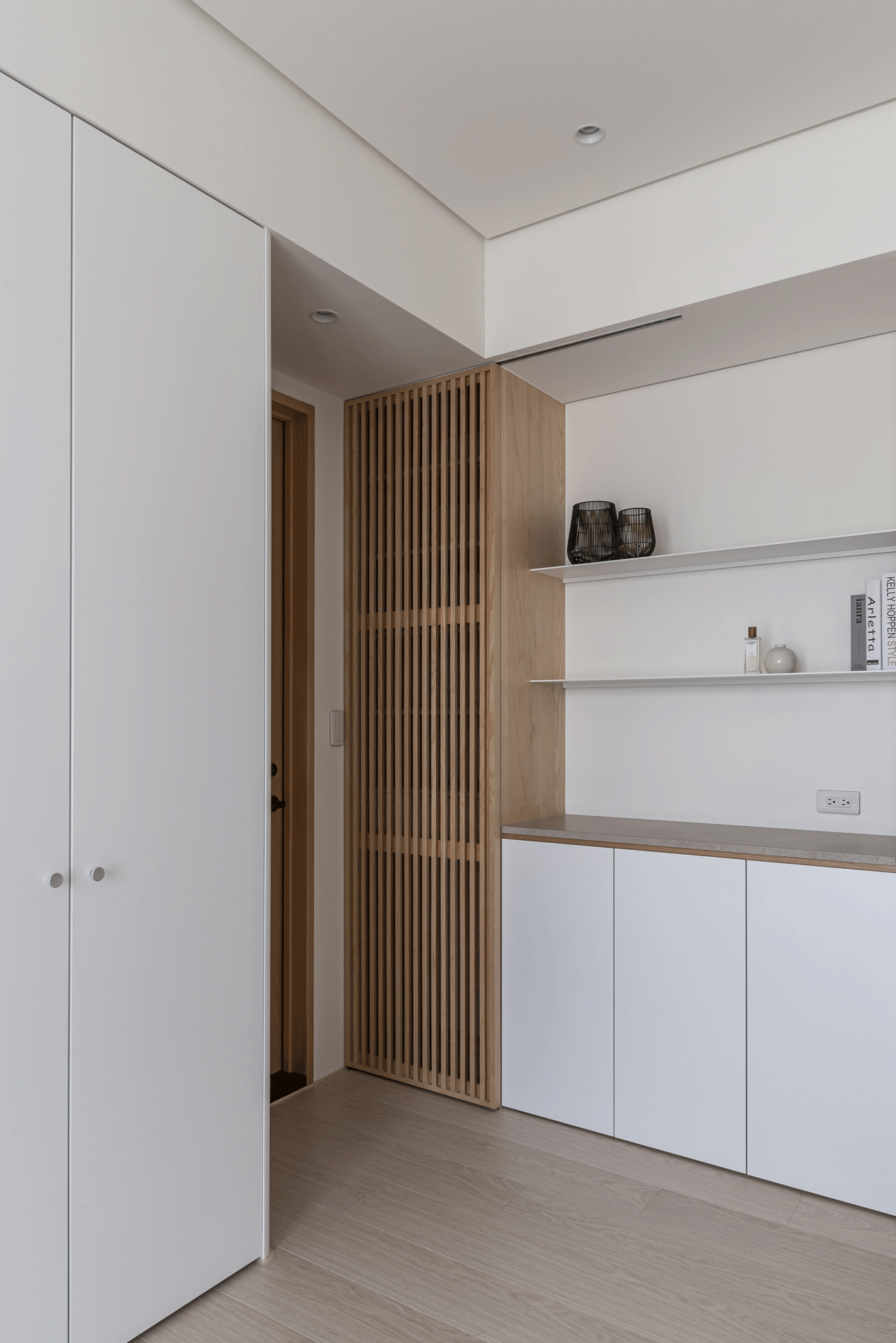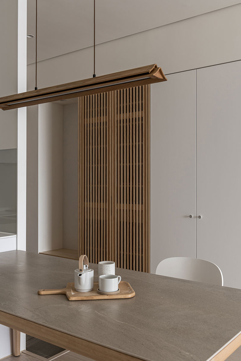 溫潤的原木質地,細膩刻畫自然的姿態,在光影流轉間,構築出理性與感性的微妙平衡,簡練卻不失層次,溫暖而精緻,恰到好處地回應居住者的需求與想望。光亮映襯著晨曦的柔和,格柵勾勒出恆久的美學秩序。當陽光輕灑,家的輪廓也隨之完整,展現最純粹的生活風景。